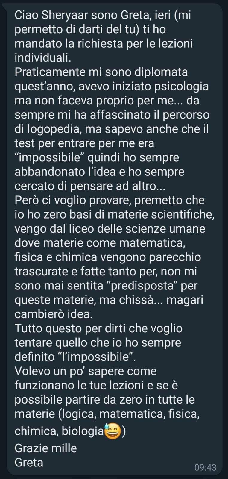 Sono Greta, ho 20 anni e dopo la maturità (2020) nella mia testa c’era tanta spensieratezza e poca, anzi pochissima voglia di studiare per qualsiasi test d’ingresso!
