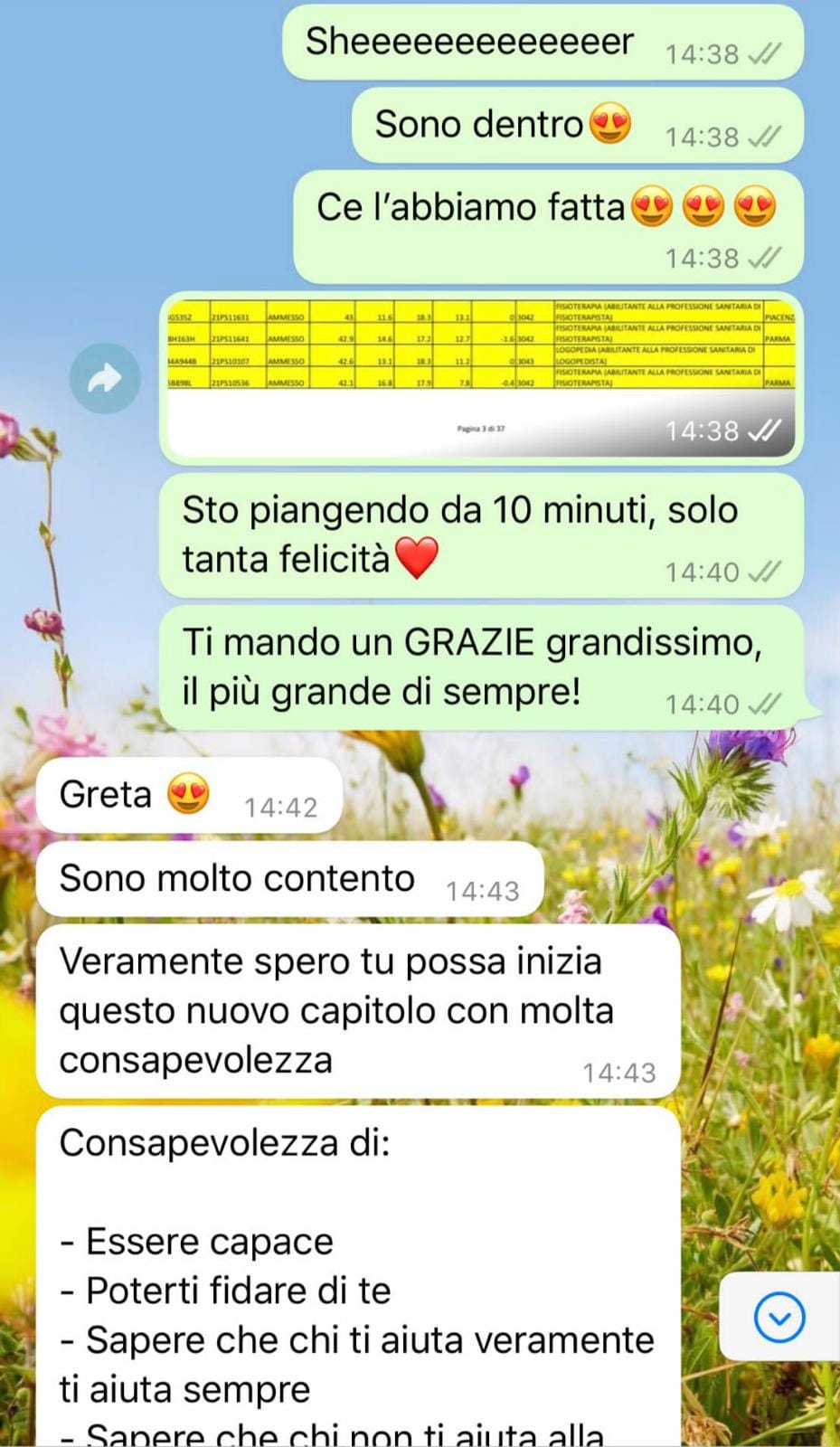 Storia molto motivante. È bello poter leggere le tue emozioni, si percepisce la tua trasparenza.